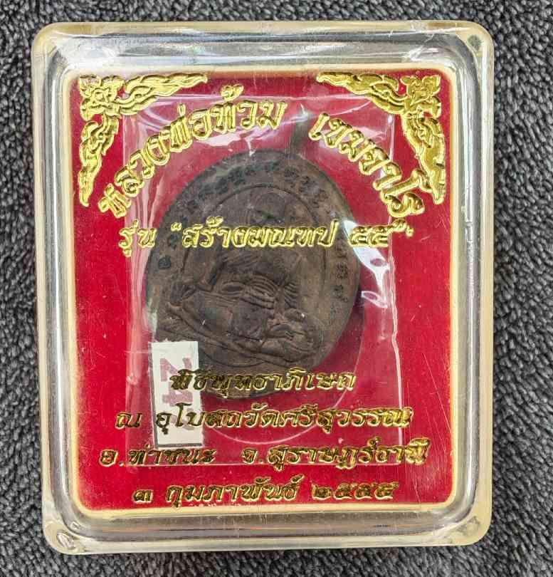 เหรียญหล่อโบราณรุ่นสร้างมณฑป ลพท้วม วัดศรีสุวรรณ เนื้อนวะ เลข 247 ซีลเดิมพร้อมกล่อง