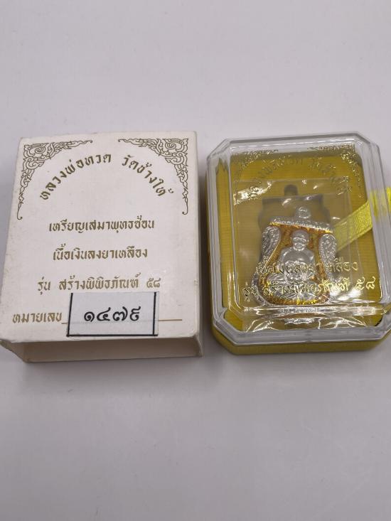 เหรียญหลวงพ่อทวด พิมพ์เสมาพุทธซ้อน เนื้อเงินลงยาเหลือง รุ่นสร้างพิพิธภัณฑ์ 58 วัดช้างให้ จ.ปัตตานี ปี 2558 หมายเลข 1479