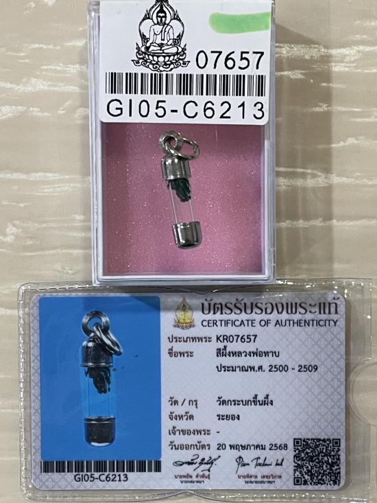(เคาะแดง1900) +บัตรสมาคม สีผึ้งเขียวหลวงพ่อทาบ วัดกระบกขึ้นผึ้ง