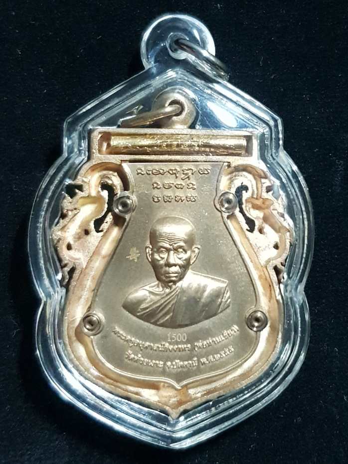 "วัดใจ" เหรียญเสมาฉลุยกองค์หลวงพ่อทวด(พิมพ์หน้าเลื่อน)หลังพ่อท่านเขียว ฝังตะกรุดทองคำยันต์รับทรัพย์ "รุ่น กิตติคุโณมหามงคล" เนื้อบรอนซ์ชุบทอง พิงค์โกลด์ สภาพสวยพร้อมกล่องเดิม หมายเลข 1500