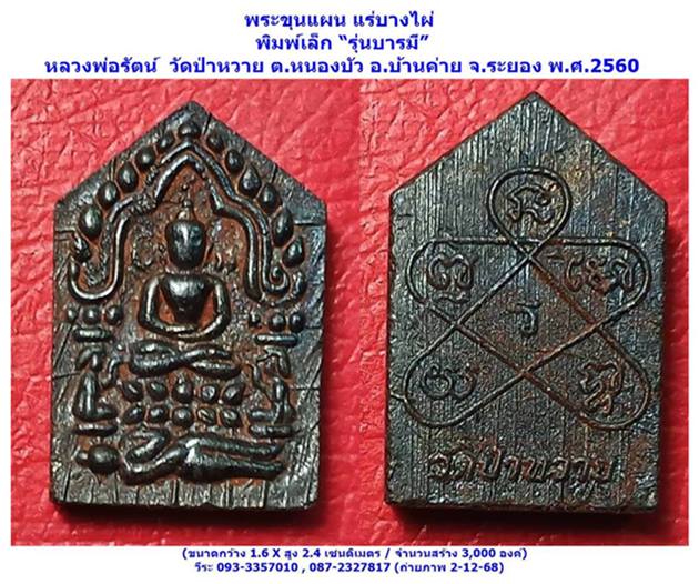 พระขุนแผน แร่บางไผ่ พิมพ์เล็ก รุ่นบารมี หลวงพ่อรัตน์ อตฺตสาโร วัดป่าหวาย ต.หนองบัว อ.บ้านค่าย จ.ระยอง พ.ศ.2560 หลวงพ่อสมศักดิ์ วัดนครอินทร์ จ.นนทบุรี สร้างถวาย