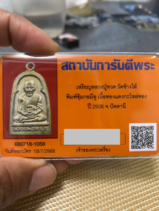 หลวงปู่ทวด ซุ้มกอปี 2506(มีห่วง) พร้อมบัตรรับรอง