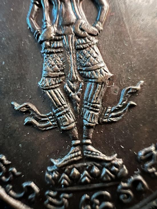 เหรียญพระสยามเทวาธิราช พิมพ์ใหญ่ วัดป่ามะไฟ จ.ปราจีนบุรี ปี 2518 เนื้อทองแดง บล็อกนิยมห้าแตก ขาขีด |
