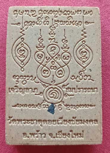 ด้านหลังเป็นยันต์ที่ท่านครูบาเขียน แล้วถอดมาปั้มด้านหลังและด้านหลัง