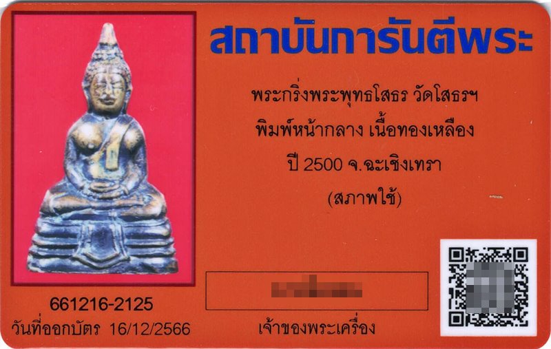 พระกริ่งหลวงพ่อโสธร พิมพ์หน้ากลาง ปี 2500 จ.ฉะเชิงเทรา เลี่ยมเงินแกะมือสวยๆ พร้อมบัตรรับรอง G-Pra (ระบุสภาพใช้) พระยังสวยน่ารัก มีหน้าตา พิมพ์ทรงยังมองเห็น หน้ากลางหายากแล้วครับ ส่วนใหญ่เจอแต่หน้าเล็ก หวงพ่อโสธรพุทธคุณครอบจักรวาล เป็นพระพุทธรูปศักดิ์สิทธิ์ ที่คนไทยนับถือกันน่าจะมากที่สุดในประเทศก็ว่าได้ ท่านที่ได้ไปรับรองไม่ผิดหวังครับ