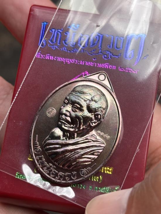 หลวงปู่ศิลา เหรียญเหนือดวง3 ทองแดงผิวรุ้ง กล่องเดิม เลข 3080