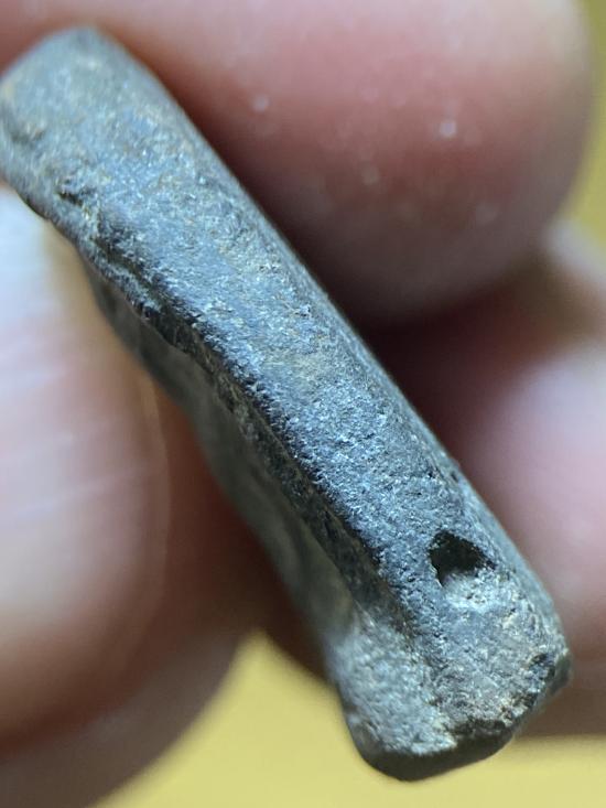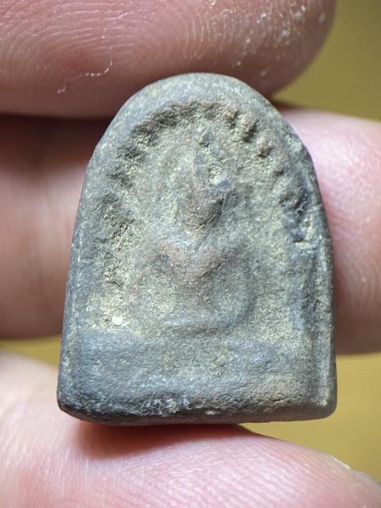 รายละเอียด พระเนื้อดินเผา ศิลปะสุโขทัย อายุราวพุทธศตวรรษที่ 19–20 ขนาดองค์พระโดยประมาณ สูงประมาณ 1.8 ซม. กว้างประมาณ 1.4 ซม. ลักษณะทรงพระเป็นซุ้มโค้งมน ด้านบนมีรัศมีรอบซุ้มเป็นตุ่มนูนเล็ก ๆ คล้ายรอยเล็บมือ ซึ่งเป็นเอกลักษณ์ของ พิมพ์เล็บมือ ในสายพระกำแพงเพชร