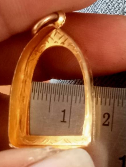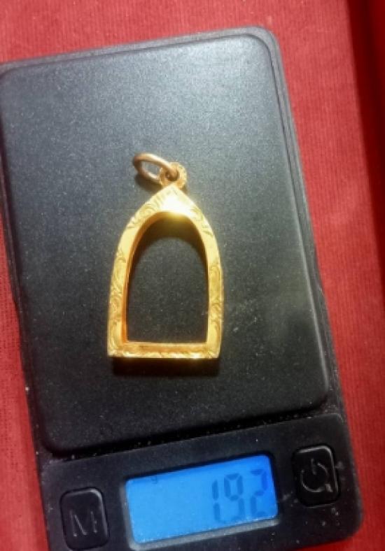 เคาะเดียว กรอบทองคำแท้สั่งทำ ตอก90% (มาตรฐานทอง 90% จะยิงได้ 75-80%) หนัก 1.92 กรัม ขนาดจอใน 1.3×2.0 ซม.ใส่พระพุทโธน้อยพิมพ์เล็ก
