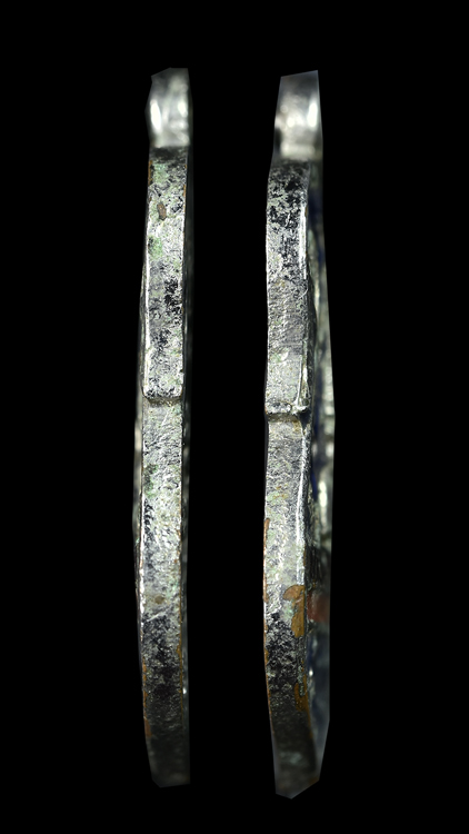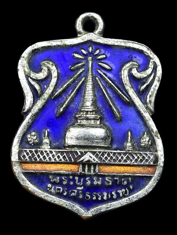 เหรียญพระบรมธาตุนครศรีธรรมราช เนื้อทองแดงชุบนิเกิ้ล ลงยาสีน้ำเงิน ปี2507 |