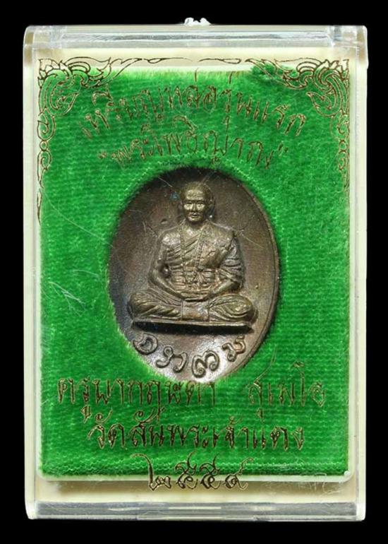 เหรียญหล่อรุ่นแรก ครูบากฤษดา วัดสันพระเจ้าแดง จ.ลำพูน พ.ศ.25 54 เนื้อชนวน ตอกโค๊ต ตอกเลข กล่องเดิมๆ !!