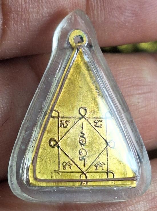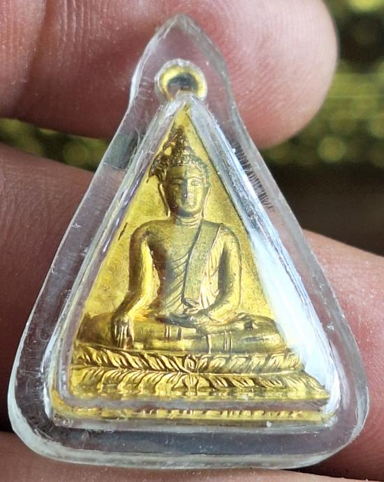 เหรียญพระพุทธทรงสามเหลี่ยม ปางมารวิชัย กะไหล่ทอง ไม่ทราบที่มา แกะออกจากเลี่ยมทอง