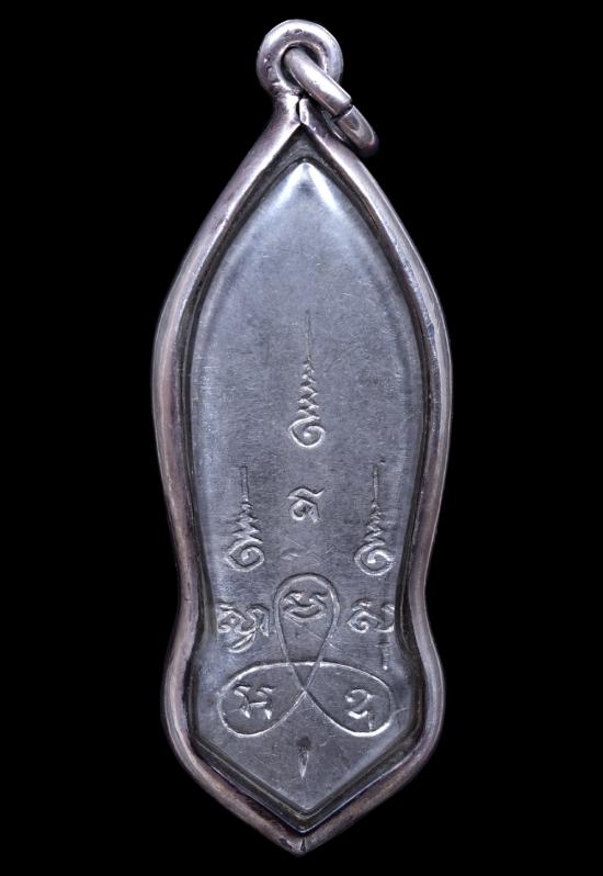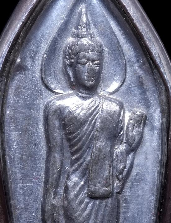 เหรียญพระลีลา 25 พุทธศตวรรษ เนื้อตะกั่ว ปี2500 บล็อคพระศกจุด เลี่ยมเงินผ่าหวาย แดงเคาะแรก