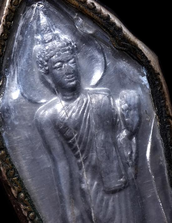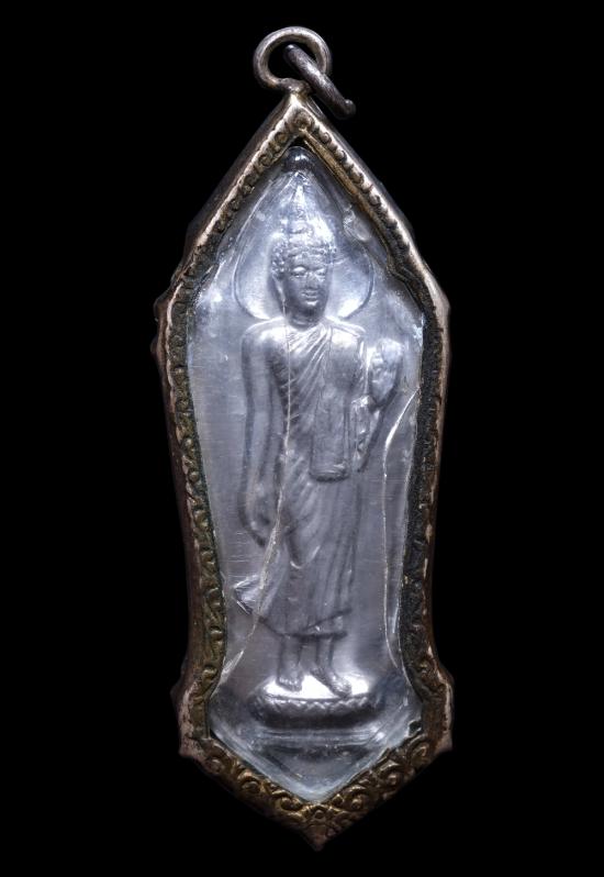 เหรียญพระลีลา 25 พุทธศตวรรษ เนื้อตะกั่ว ปี2500 บล็อคพระศกจุด เลี่ยมเก่า แดงเคาะแรก