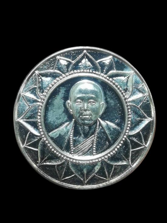 เหรียญกลมเล็กหมดเคราะห์ ครูบาอริยชาติ วัดแสงแก้วโพธิญาณ เนื้อเงิน ปี2555 |