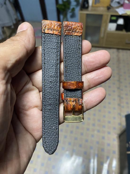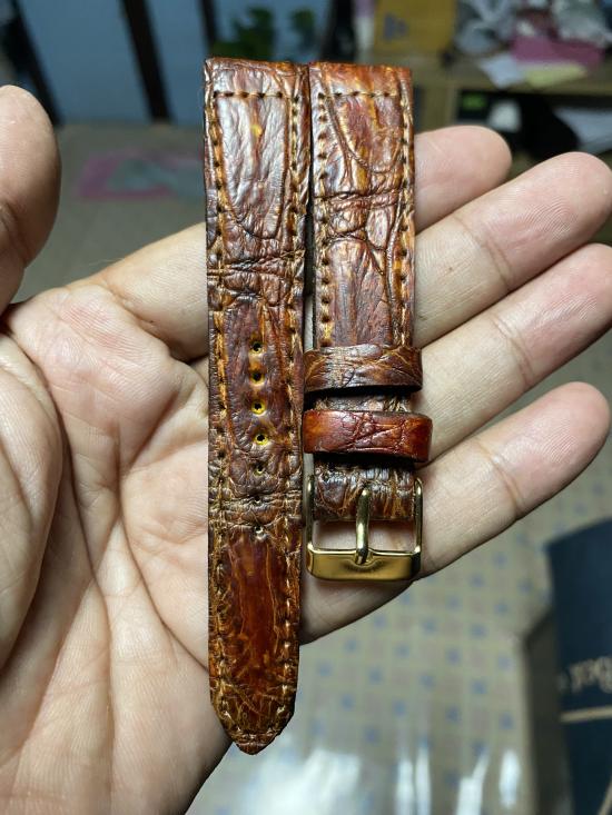 สายนาฬิกาหนังจระเข้แท้ใหม่มือ1 ขนาด18มิลแฮนเมจบัคเคิลสีทอง |