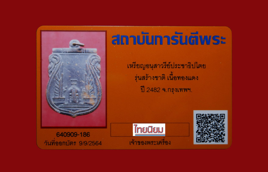 เหรียญอนุสาวรีย์ประชาธิปไตย รุ่นสร้างชาติ ปลุกเสกพิธีใหญ่ที่วัดพระแก้ว ในปี พ.ศ 2482 เหรียญดี พิธีใหญ่ (หลวงพ่อเดิม วัดหนองโพธิ์ ปลุกเสก) ทีเดียว 3เหรียญ + บัตรรับรอง G-PRA 1เหรียญ