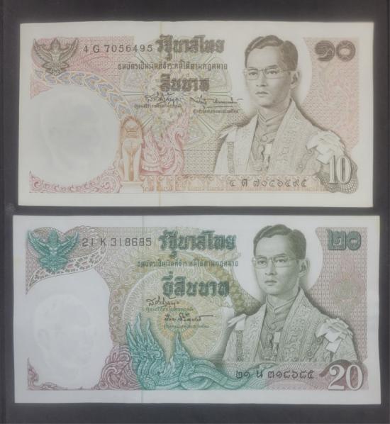 ธนบัตร 10 บาท หลังวัดเบญจ กับ 20 บาท หลังเรืออนันตนาคราช
