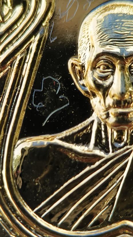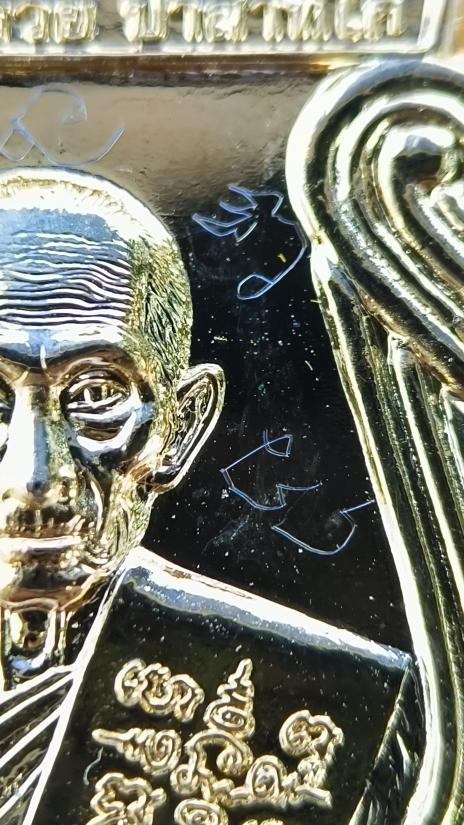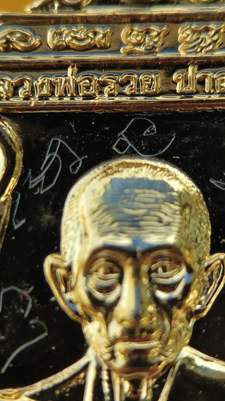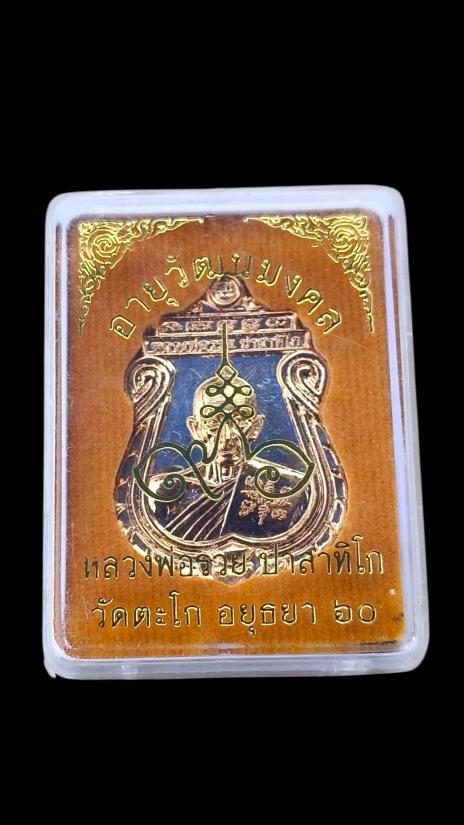 มีจารหน้าหลัง เหรียญหลวงพ่อรวย วัดตะโก รุ่น อายุวัฒนมงคล96 เนื้อกะหลั่ยทอง มีรอยจารหน้าหลัง กล่องเดิม