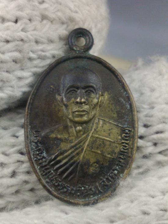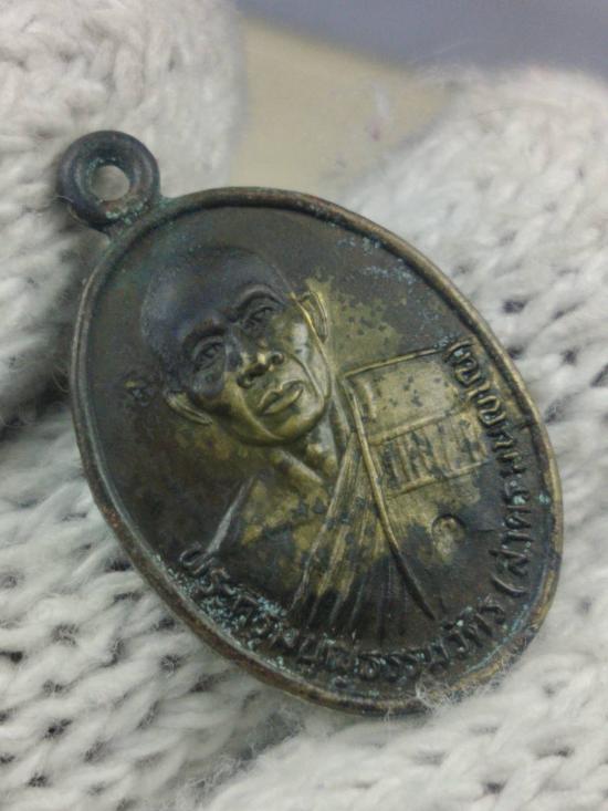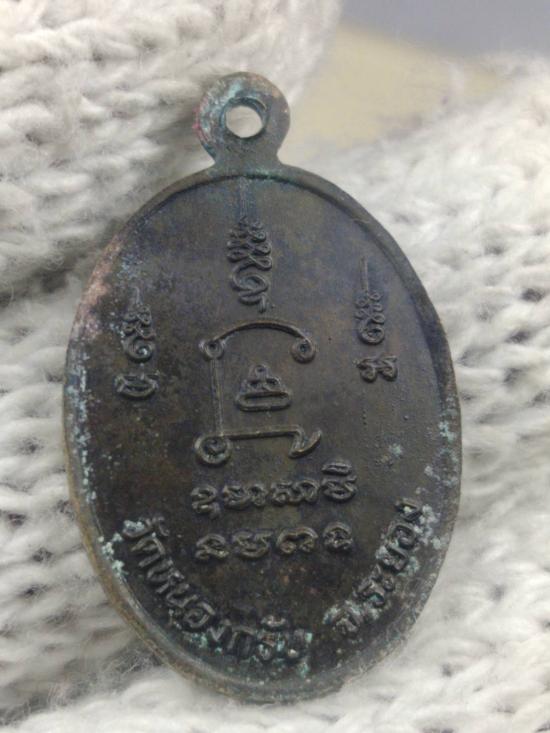 เหรียญหน้าตรงรุ่นแรก ปี 30 เนื้อทองฝาบาตร หลังยันต์นะโภคทรัพ ย์ หลวงพ่อสาคร วัดหนองกรับ |