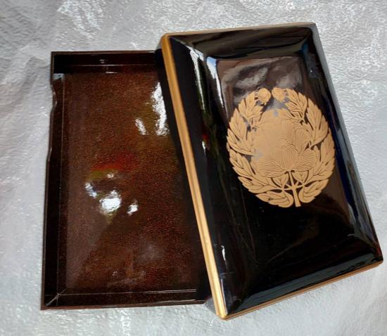 กล่องไม้เครื่องเขินญี่ปุ่น (Japanese lacquerware) ซึ่งเป็นงานศิลปะการลงรักปิดทองที่มีความประณีต ซึ่งมีชื่อเสียงในด้านความทนทานเป็นพิเศษ ขนาด 6*9 นิ้ว หนา 2 นิ้ว เก็บอุปกรณ์พระเครื่อง