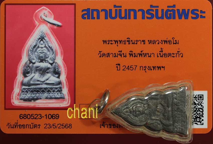 พระพุทธชินราช หลวงพ่อโม วัดสามจีน พิมพ์หนา เนื้อตะกั่ว ปี2457 จ.กรุงเทพฯ หายาก พร้อมบัตรรับรองพระแท้จากจีพระอุ่นใจได้ ไม่ต้องลุ้นค่ะ