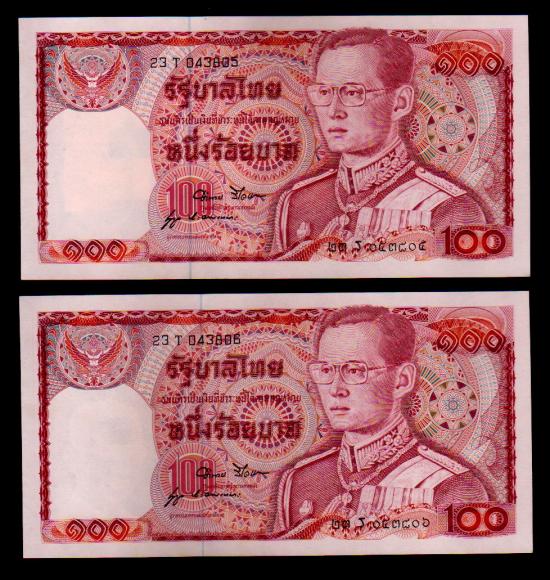 ## ธนบัตร 100 บาท ## ช้างแดง ## หกหลัก ## เรียงเลข 2 ฉบับ ## ไม่ผ่านการใช้ |