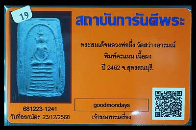 พระผงพิมพ์สมเด็จ ปี2462 หลวงพ่อผึ่ง วัดสว่างอารมณ์ สุพรรณบุรี