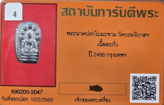 ปรกใบมะขาม วัดบรมนิวาสฯ เนื้อตะกั่ว ปี2495 สวยๆ พร้อมบัตรรับรอง