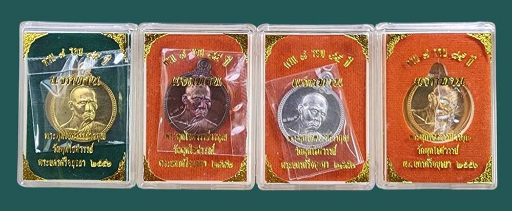 ( 4 เหรียญ )(เนื้อทองเหลือง/ทองแดงรมดำ/ตะกั่ว/สัตตโลหะ )