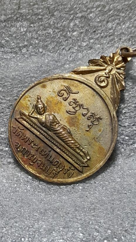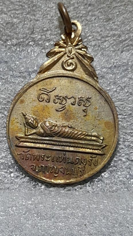 วัดใจเคาะเดียว......100.......เหรียญพระแท่น หลังพระนอนปางไสยาสน์ กะไหล่ทอง วัดพระแท่นดงรัง จังหวัดกาญจนบุรี สวย |