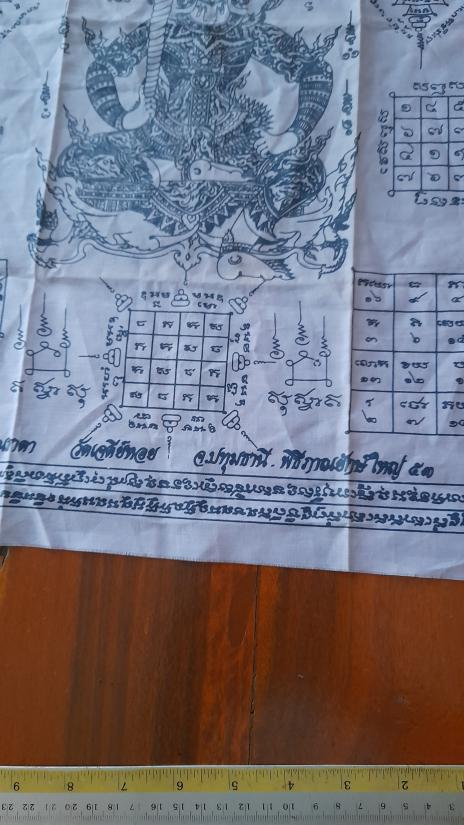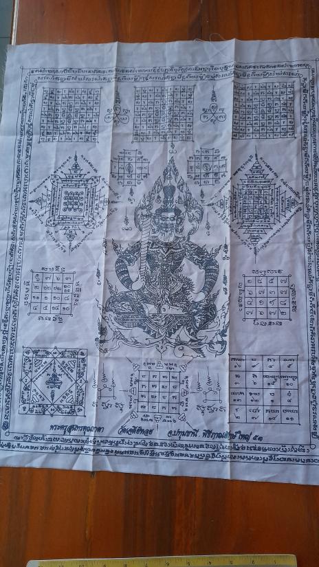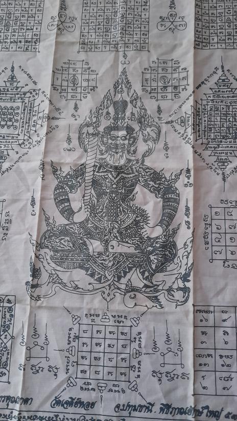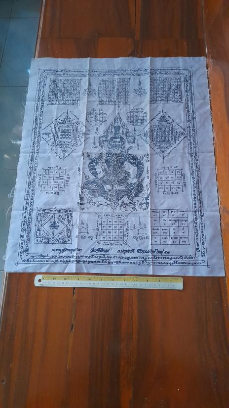 วัดใจเคาะเดียว......100.......ผ้ายันต์ท้าวเวสสุวรรณ หลวงพ่อทองกลึง วัดเจดีย์หอย ปทุมธานี ผืนใหญ่ ขนาด 19 x 23 นิ้ว