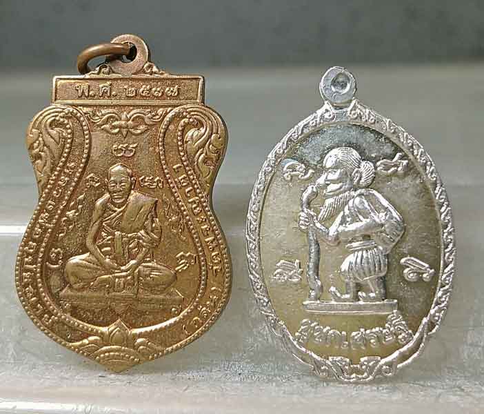 เหรียญหลวงพ่อกลั่น วัดพระญาติ อยุธยา ปี37 + เหรียญชูชก พระอาจารณ์แดง วัดป้อมรามัญ อยุธยา ปี55