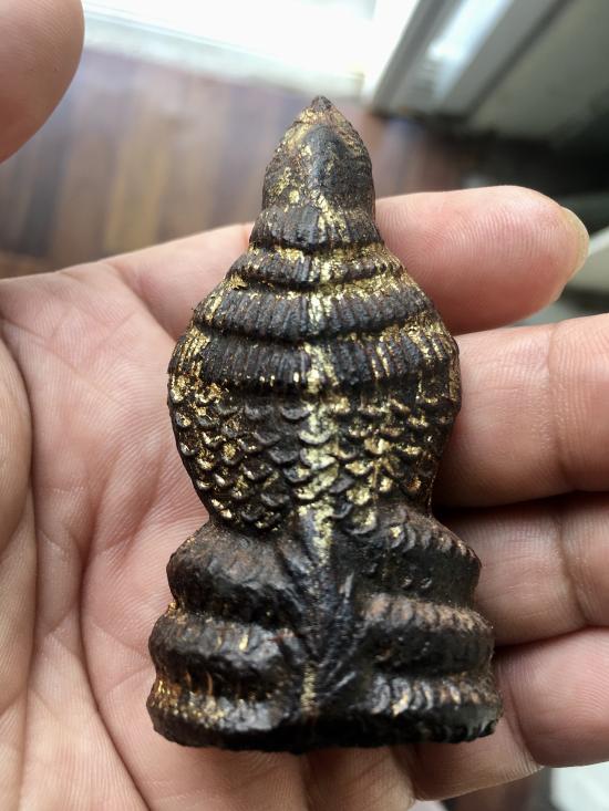 พระเนื้อว่านจำปาสัก พิมพ์นาคปรก ฐาน 1.5 นิ้ว สูง 3 นิ้ว ปิดทอง เก่า สวย น่าเก็บ