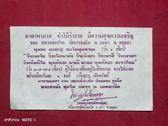 ธนบัตรขวัญถุง หลวงพ่อปาน วัดบางนมโค จ.พระนครศรีอยุธยา เก่า สภาพสวยสมบูรณ์ ยุคแรกๆ ประมาณปี 250กว่าๆ สมัยหลวงพ่อเล็ก วัดบางนมโค จัดสร้างครับ
