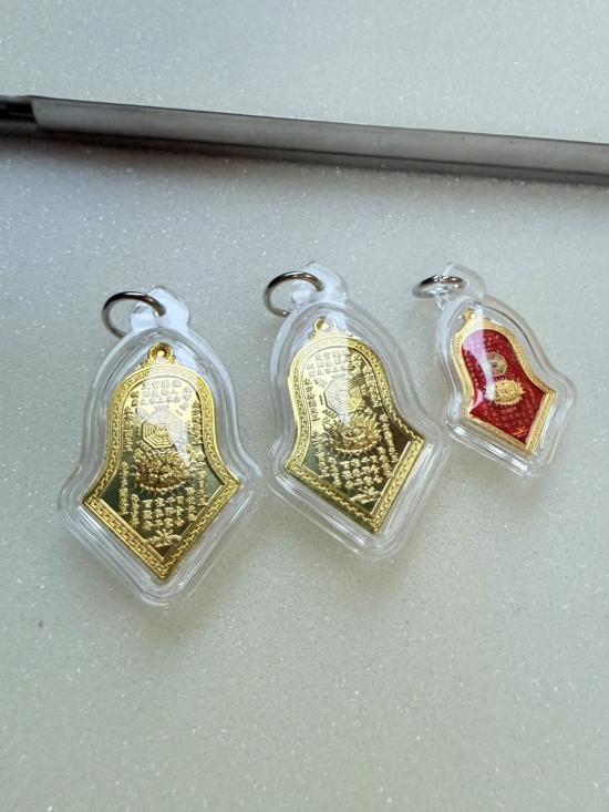 **วัดใจ3เหรียญ** กันชง จำปี ชนวนกะหลั่ยทองลงยาแดง1(พิมพ์เล็ก) ฝาบาตร2(พิมพ์ใหญ่)หลวงพ่ออิฏฐ์ วัดจุฬสมณี(พร้อมกล่อง)