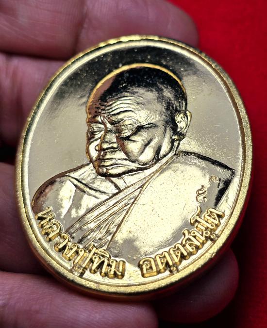 เหรียญน้ำมนต์รูปไข่ เนื้อกะไหล่ทอง ปี 41 หลวงปู่ทิม วัดพระขาว อยุธยา พร้อมกล่องเดิม กว้าง 3.8 สูง 4.8 ซม. น้ำหนัก 43 กรัม