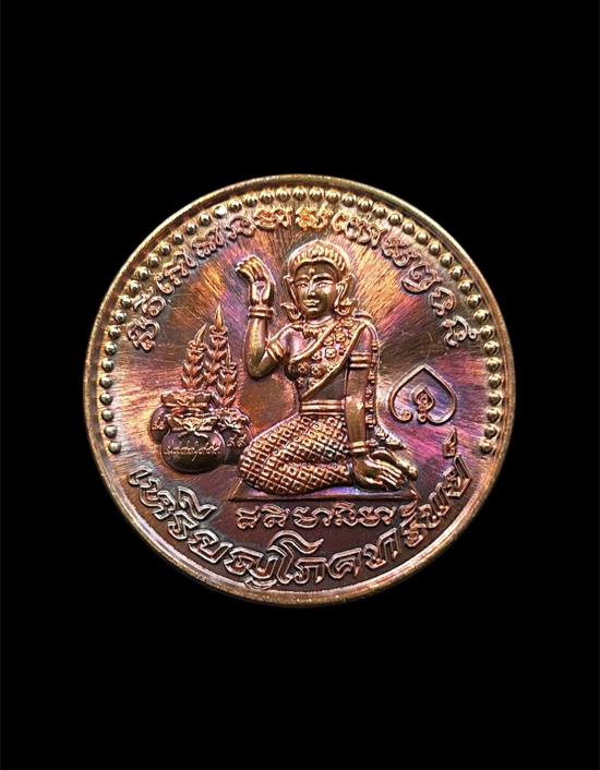 เหรียญโภคทรัพย์ "นางกวักหลังหนุมาน" หลวงพ่อวิชัย วัดหัวเด่น "เนื้อทองแดงผิวไฟ" หมายเลขสวยๆ ผิวรุ้ง