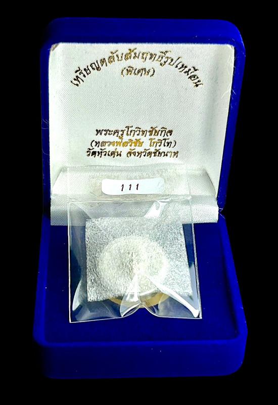 เหรียญตลับยาหม่อง หลวงพ่อวิชัย วัดหัวเด่น เนื้อเงินอุดผงฝังตะกรุดเงิน หมายเลข 111 ตองแม่ทัพ สวยกริ๊บ!