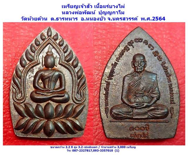 ชื่อพระเครื่อง เหรียญเจ้าสัว เนื้อแร่บางไผ่ หลวงพ่อพัฒน์ ปุญญกาโม วัดห้วยด้วน อ.หนองบัว จ.นครสวรรค์ พ.ศ.2564 /หลวงพ่อยวง วัดโพธิ์ศรี/หลวงพ่อบุญมา /หลวงพ่อเกาะ วัดท่าสมอ/หลวงพ่อสมศักดิ์ วัดนครอินทร์ ปลุกเสก