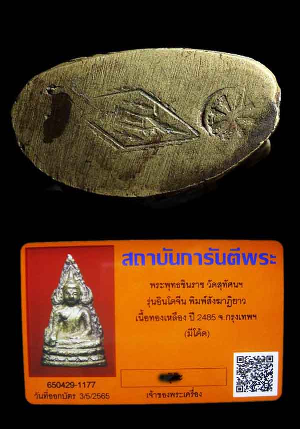 พระพุทธชินราชอินโดจีน ปี 2485 มีโค๊ต พิมพ์สังฆาฎิยาว หน้าไทย