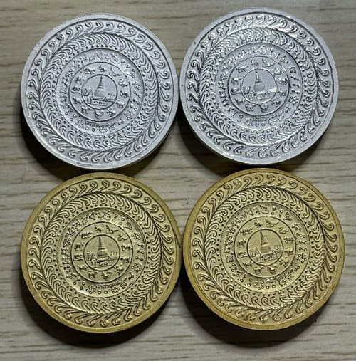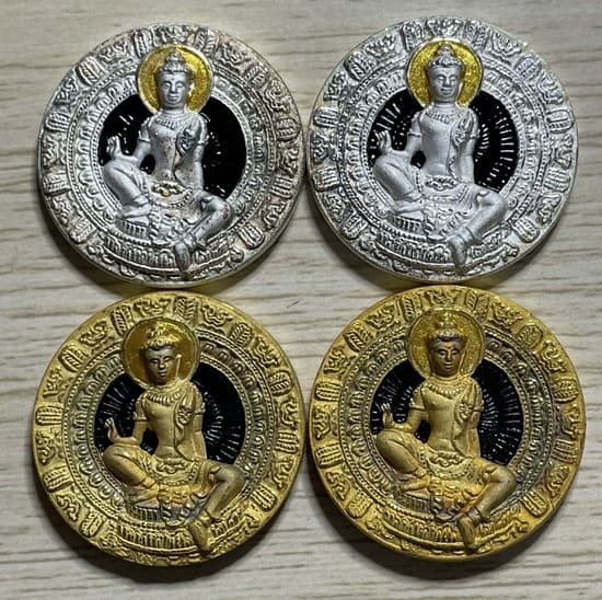 รายละเอียด องค์พ่อจตุคามรามเทพ รุ่นเจ้าสัวยุคแปด ปี 2550 โลหะพ่นทรายเงินลงยา2+โลหะพ่นทองลงยา2 ขนาด 3.2 ซม. รวม 4 องค์ ชุดที่ 4