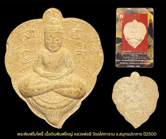 พระพิมพ์ใบโพธิ์ เนื้อดินพิมพ์ใหญ่ หลวงพ่อลี วัดอโศการาม จ.สมุทรปราการ ปี2500 เคาะเดียว