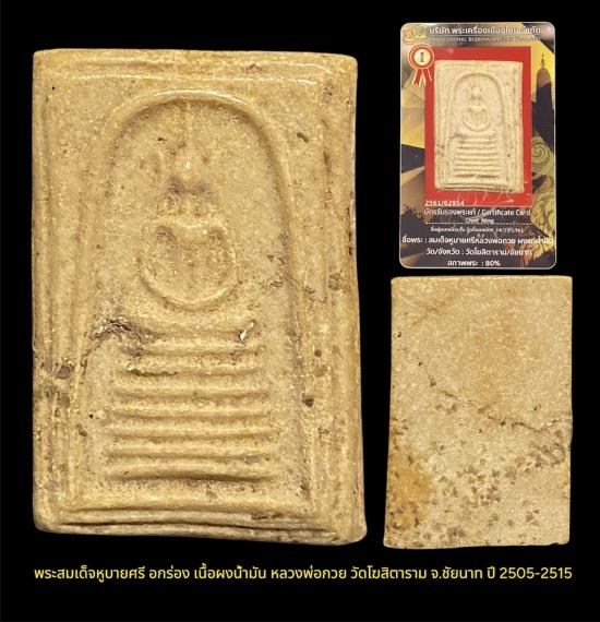 พระสมเด็จหูบายศรี อกร่อง เนื้อผงน้ำมัน หลวงพ่อกวย วัดโฆสิตาราม จ.ชัยนาท ปี 2505-1515 เคาะเดียว