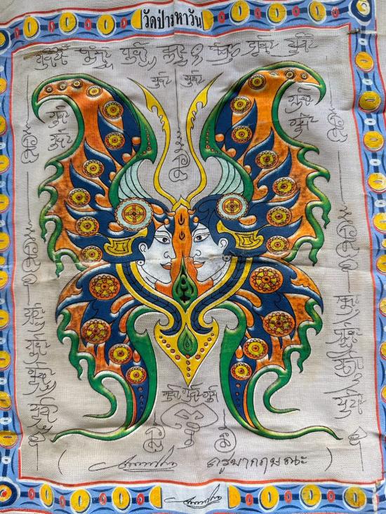 220... ผ้ายันต์เทพภมรจำแลง ครูบากฤษณะ วัดเวฬุวัน ยุคต้น ผืนใหญ่ขนาด 18นิ้ว |