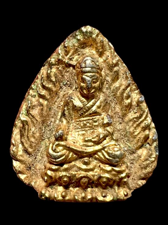 รูปหล่อใบโพธิ์ หลวงปู่ไต้ฮงกง พ.ศ.2518 ชุบนิกเกิ้ล กะไหล่ทอง มูลนิธิปอเต็กตึ๊งจัดสร้าง (หลวงปู่โต๊ะ ปลุกเสกฯ )
