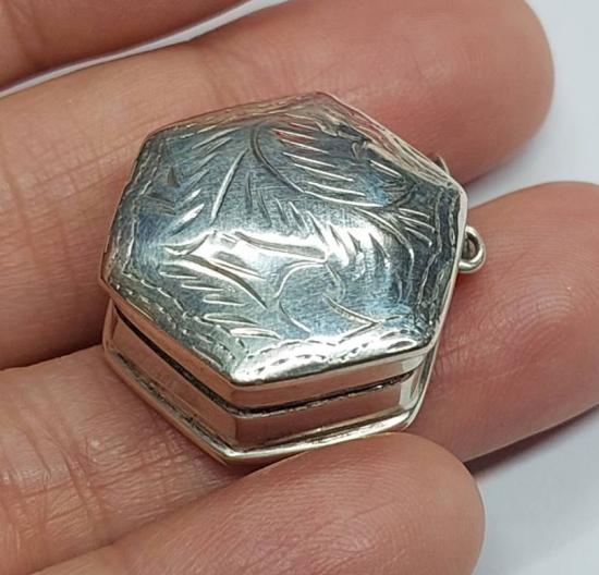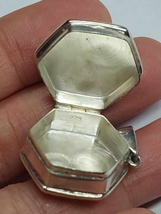 จี้ล็อกเก็ต ตลับทรงแปดเหลี่ยม เงินสเตอร์ลิงที่มีลวดลายแกะสลักสวยงาม งานนอก |