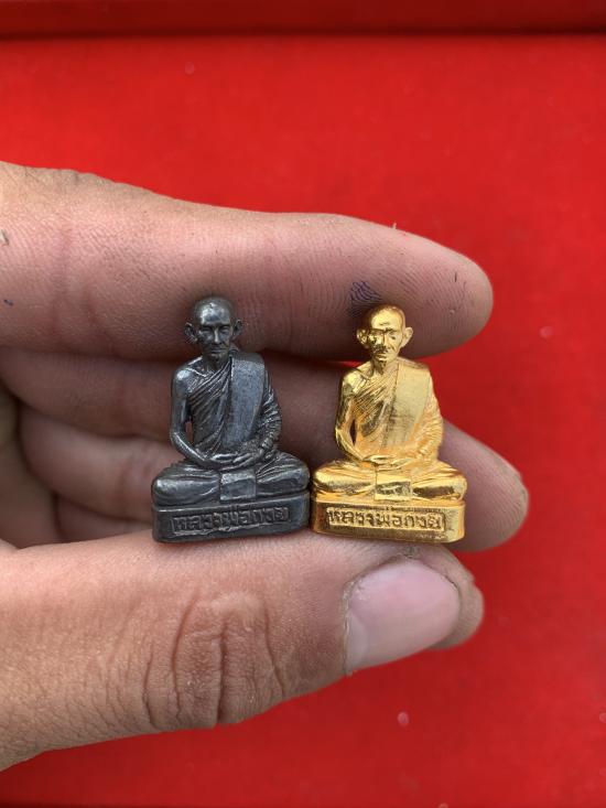 รูปหล่อ60 หลวงพ่อกวย กระไหล่ทอง +รมดำ สวยเดิมพร้อมกล่อง
