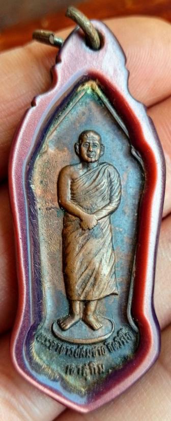 เคาะเดียวแดง.....เหรียญหลวงพ่อสมชาย วัดเขาสุกิม พิมพ์ยืน รุ่นโรตารี่ เนื้อทองแดงรมดำ ปี21 |