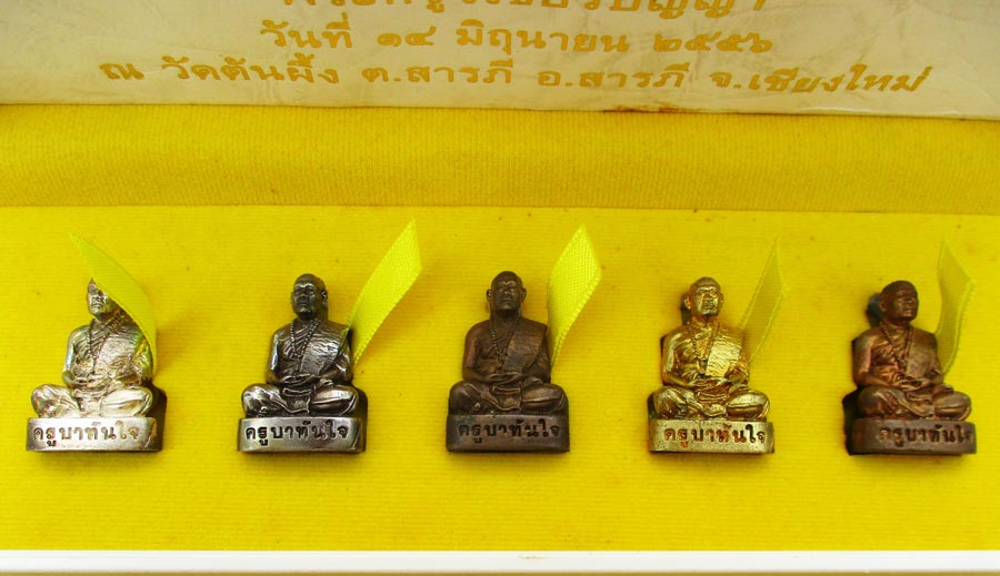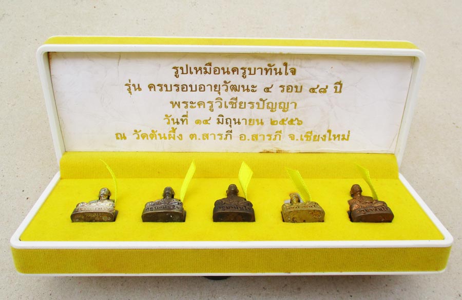รูปเหมือนหล่อ พระครูวิเชียรปัญญา ครูบาทันใจ วัดป่างิ้ว จ.เชียงใหม่ รุ่น ครบรอบอายุวัฒนะ 4 รอบ 48 ปี พ.ศ.2556 ชุดกรรมการ 5 องค์ สภาพนอนกล่องเดิม !!