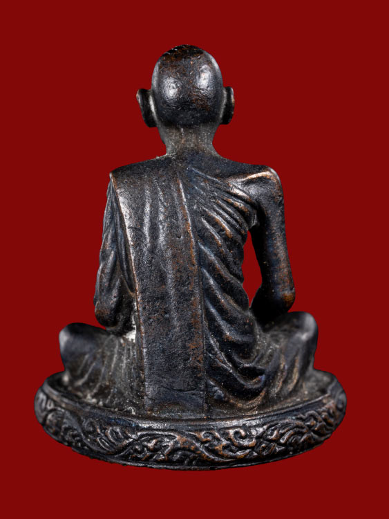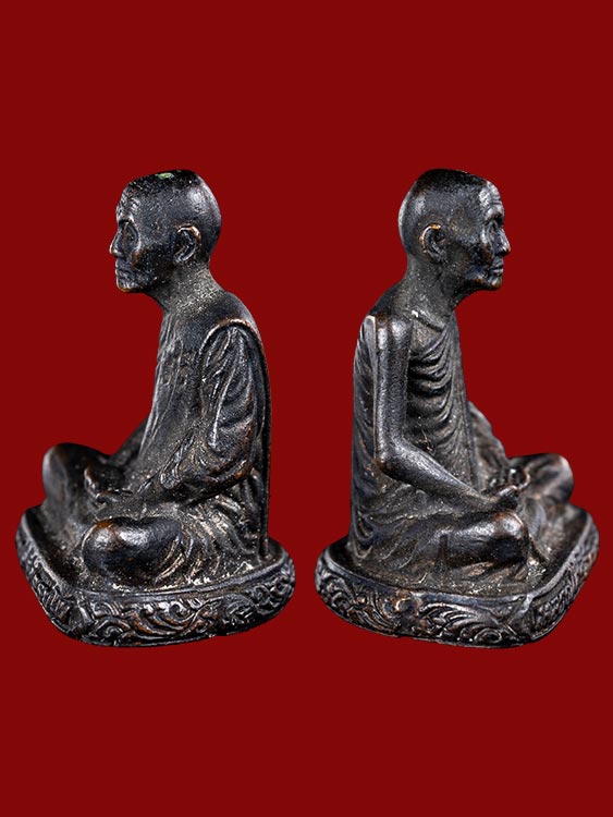 รูปเหมือนหล่อลอยองค์ หล่อตัน หลวงปู่ศรี ฐิตธัมโม วัดหลวงสุมังคลาราม จ.ศรีสะเกษ เนื้อทอแดงรมดำ ตอกโค๊ต